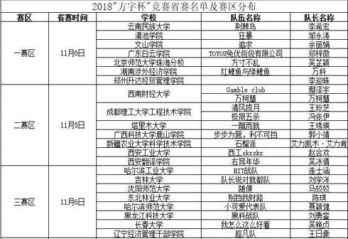 11月6日參加省賽的賽區(qū)有:一賽區(qū)、三賽區(qū)